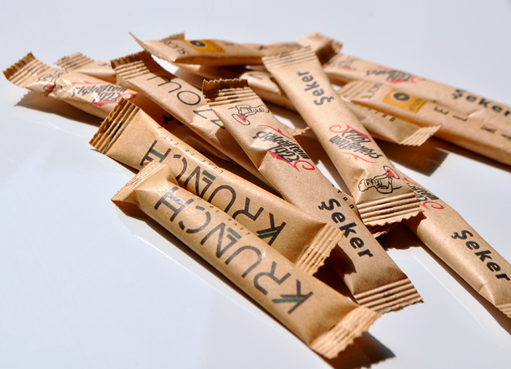 Baskılı stick toz şeker isteğe göre 5×8 kare dolum ve 2 x 9.5 cm stick olarak üretilebilmektedir.